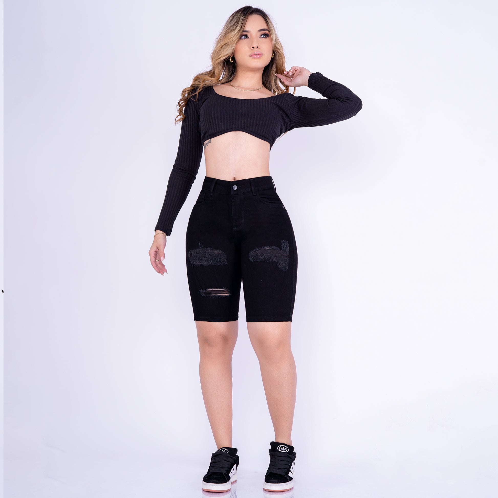 Color negro con desgastes sutiles para un toque rebelde pero sofisticado